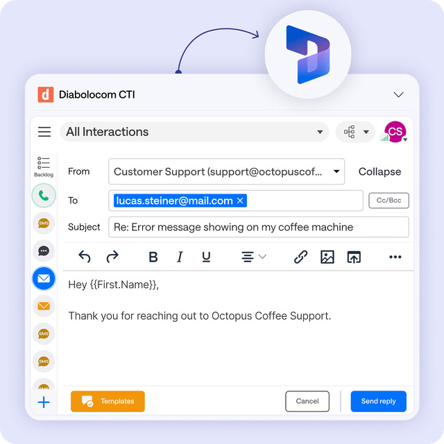 Make and take calls right inside Microsoft Dynamics with Diabolocom. No app switching, no extra tabs. Reps keep customer details on screen while they talk, with crystal-clear audio and ultra-low latency.