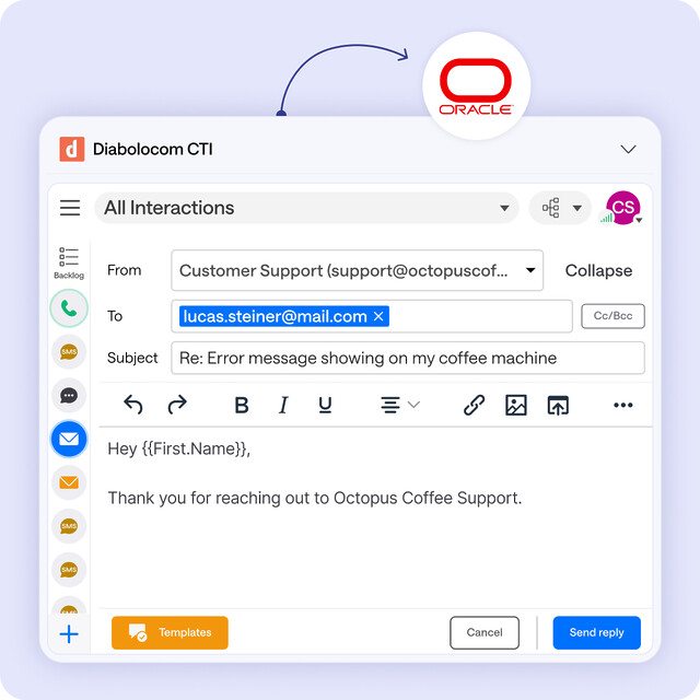 The Oracle Service Cloud Integration connects your Oracle database with the Diabolocom platform. Every call or interaction is automatically logged and updated in both systems to maintain consistent and accurate customer data.